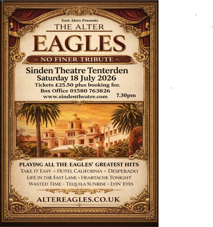 Lauded for their accuracy, the Alter Eagles are a tribute to the Eagles, pure and simple and in a typical two hour set play many of the band's greatest hits, including Hotel California, Desperado, Life In The Fast Lane, How Long, Lyin' Eyes, Take It Easy and One Of These Nights. The Alter Eagles are: Steve McCormack (guitars, vocals) Alan Tomkins (keys, guitars, vocals) Mike Bradley (guitars, vocals) Ed Chisholm (drums and percussion) and Rob Beattie (bass, vocals)